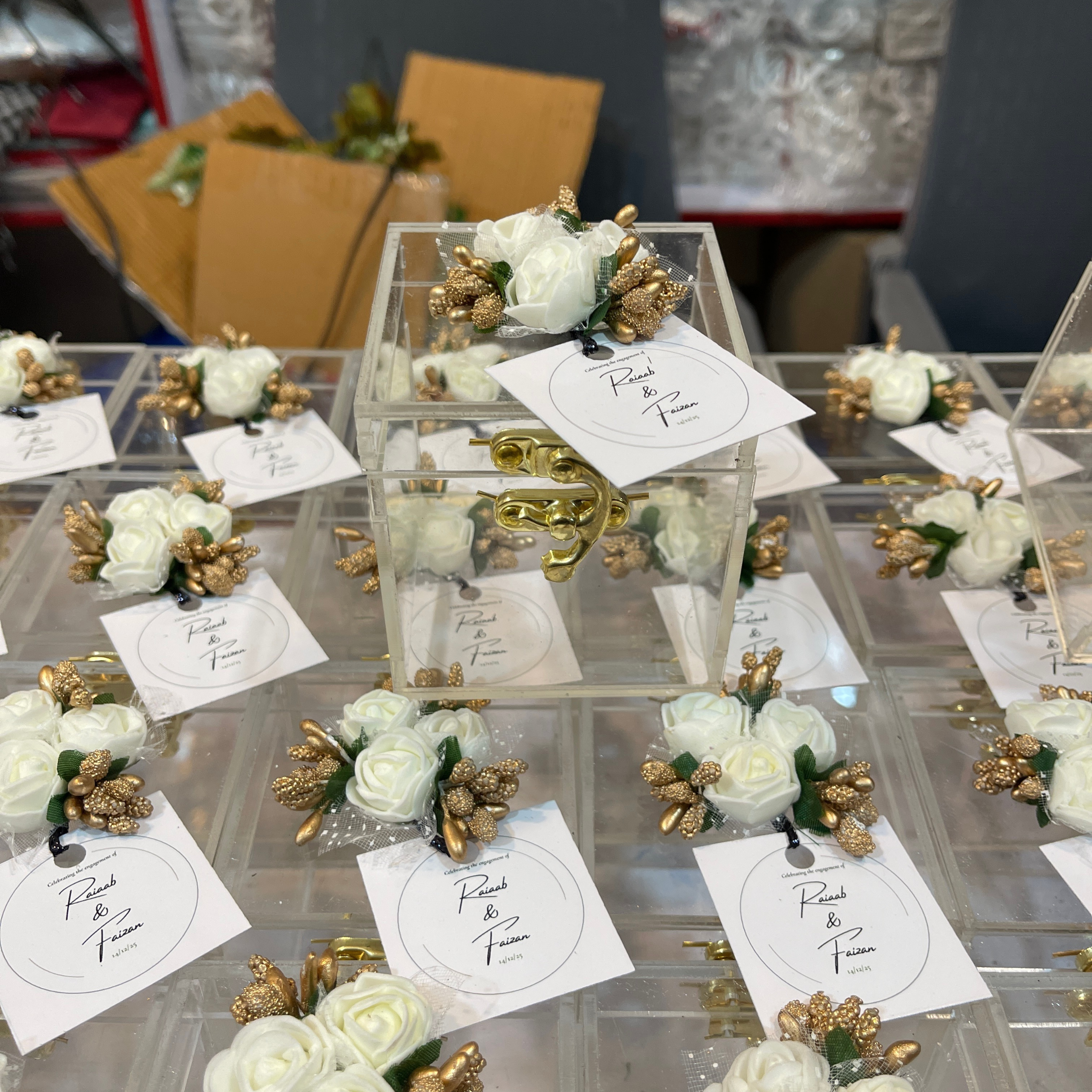 Make your special occasions more organized and elegant with our Acrylic Bid Box with Lock, specially designed for Nikkah, Wedding, Valima, and engagement events. Crafted from premium clear acrylic in a compact 3×3 size, this bid box is perfect for collecting bids, envelopes, or small gift cards without taking up much space. The box features a simple hook-style lock (non-key lock), similar to those commonly used in wedding gift boxes, offering ease of use while keeping contents neatly secured throughout the event. Its clean, transparent design blends beautifully with wedding décor and adds a refined, modern touch to your celebration.