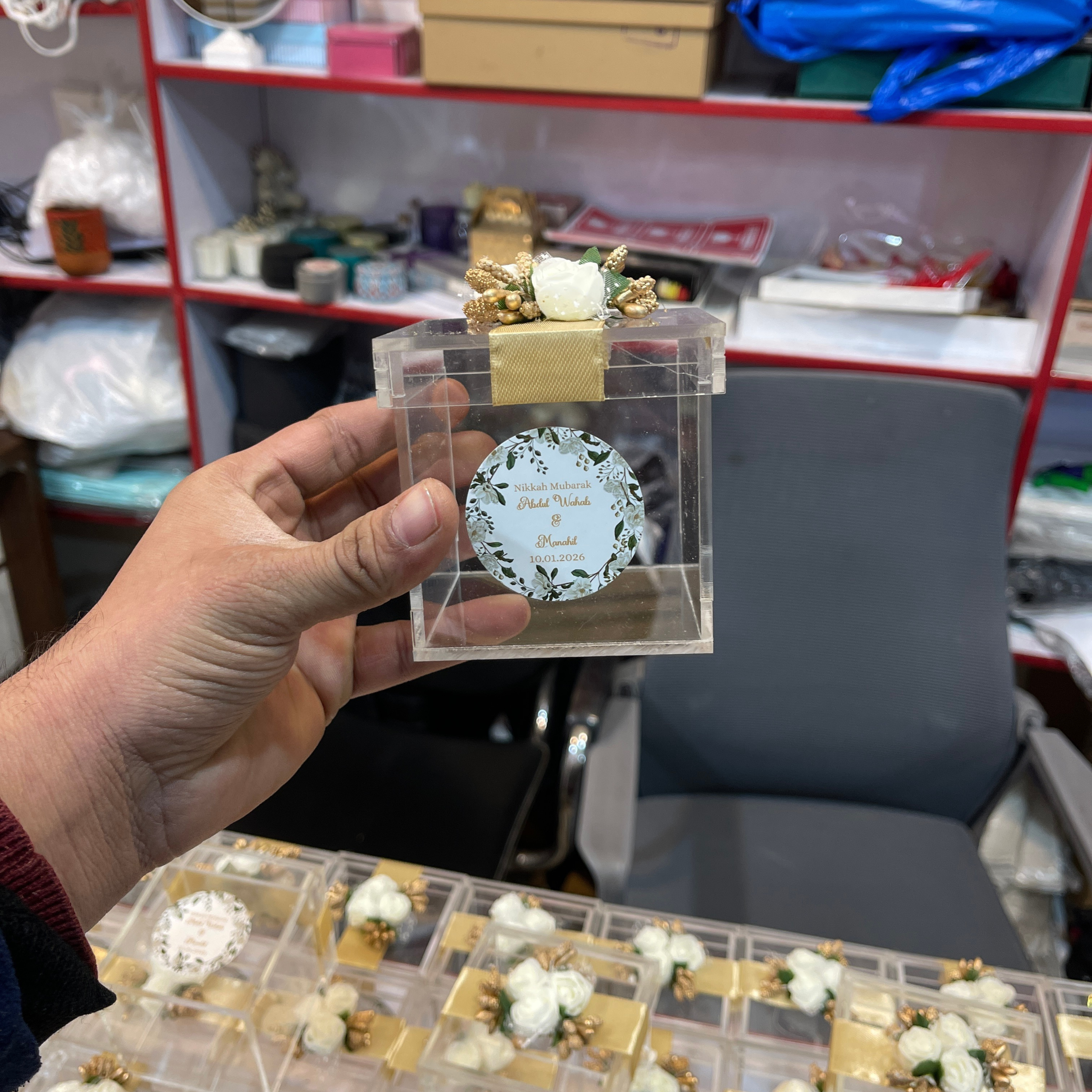Our Acrylic Bid Box is thoughtfully created for wedding and religious events where presentation matters as much as purpose. The transparent design builds trust, while the sturdy acrylic structure ensures durability throughout the event. Ideal for Nikkah and wedding . this bid box combines functionality with elegance.