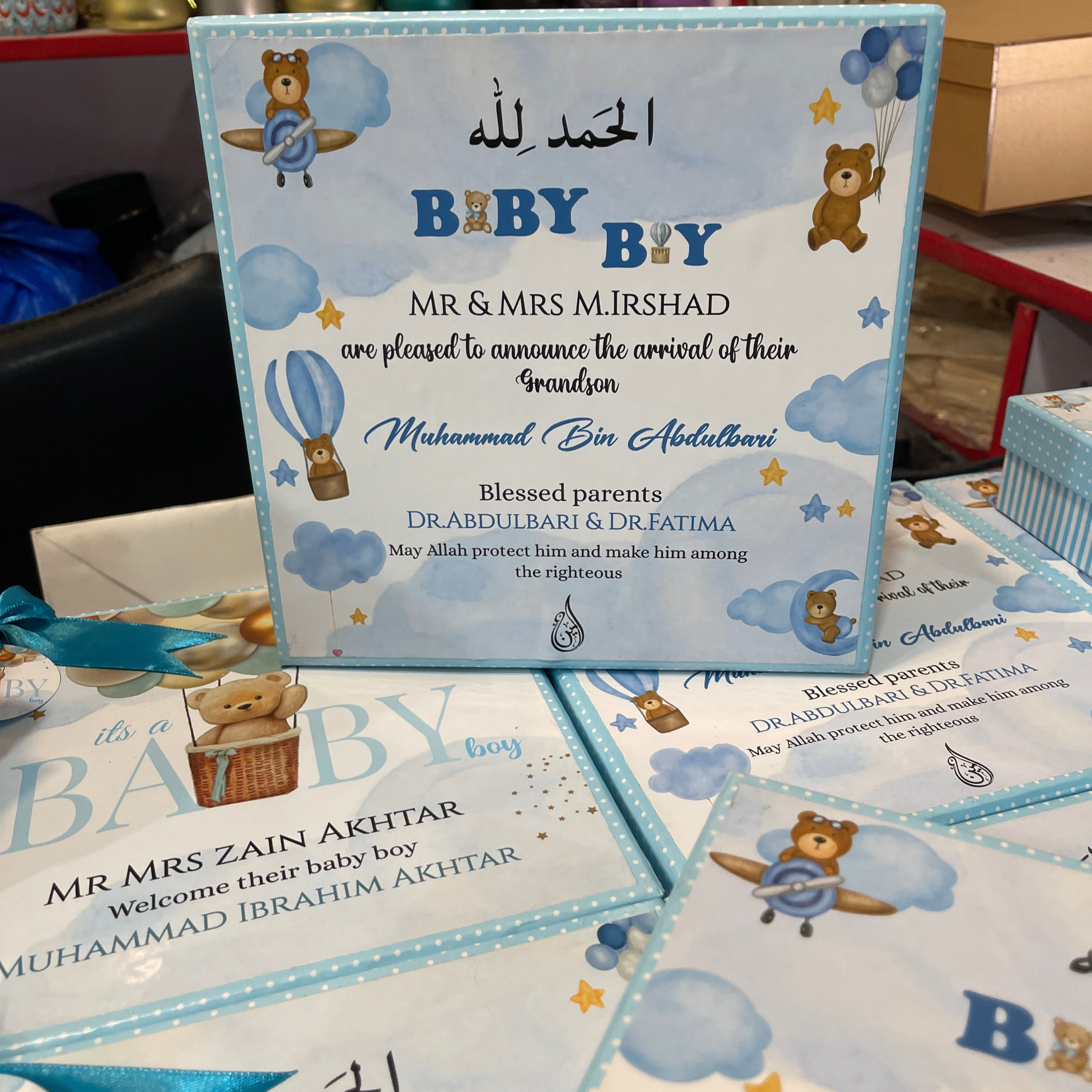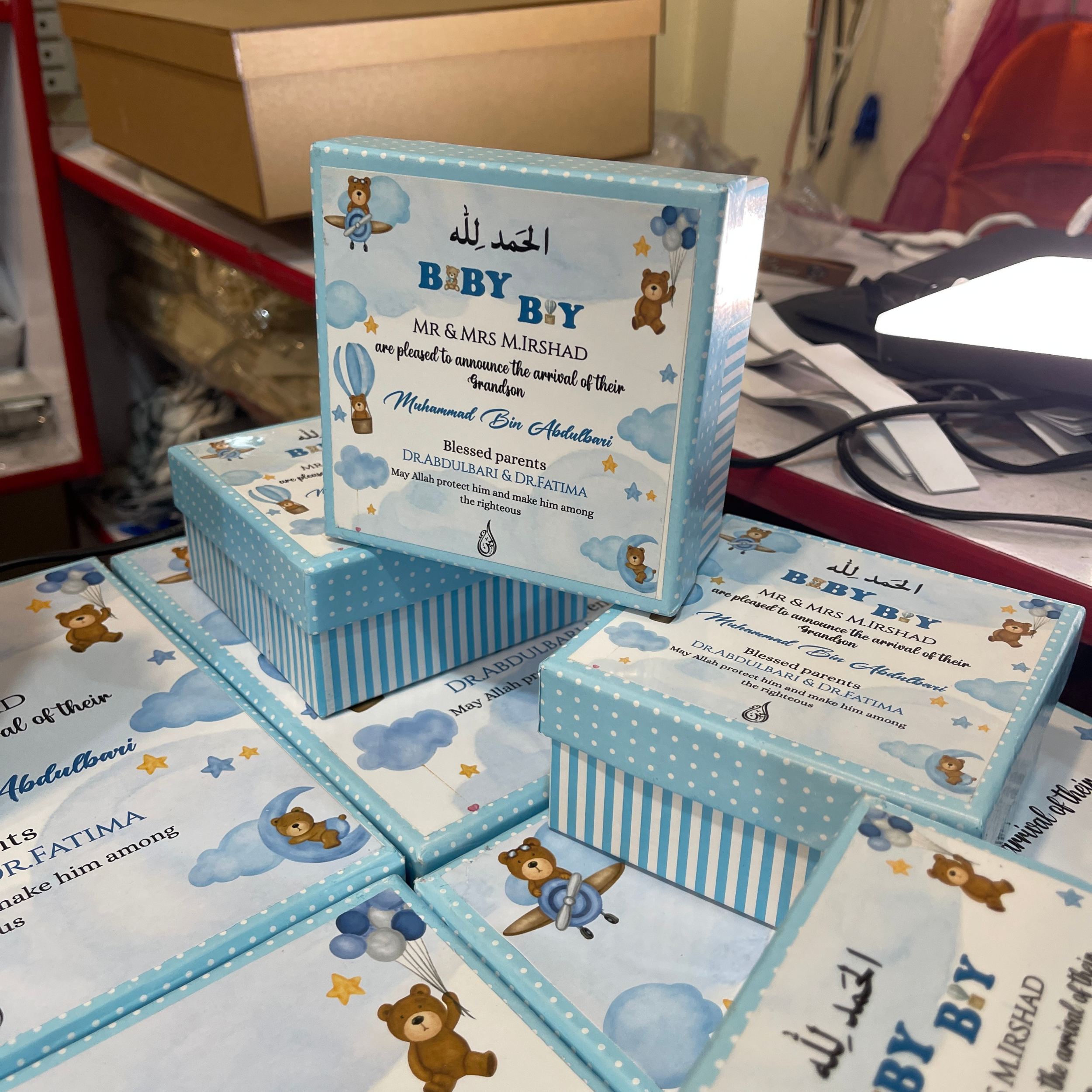Our Baby Birth Announcement Boxes are designed to celebrate every newborn with elegance and emotion. Available as baby boy sweet boxes, baby girl sweet boxes, and ideal for newborn giveaways ideas or newborn favors in Pakistan, these baby sweet boxes are the perfect keepsake to share your joy. At HF Gifts, we combine premium craftsmanship, personalization, and heartfelt presentation — because every newborn deserves a memorable welcome.