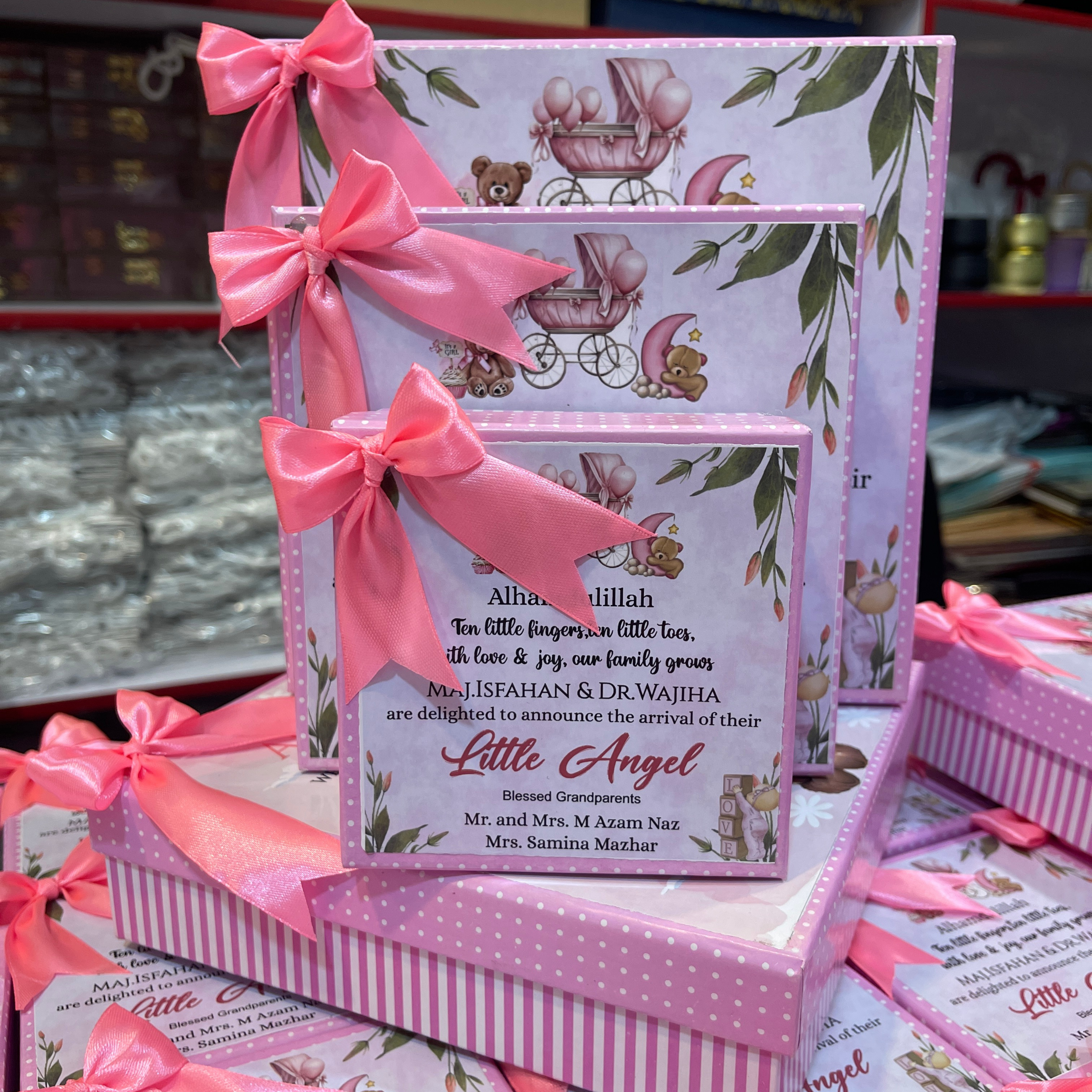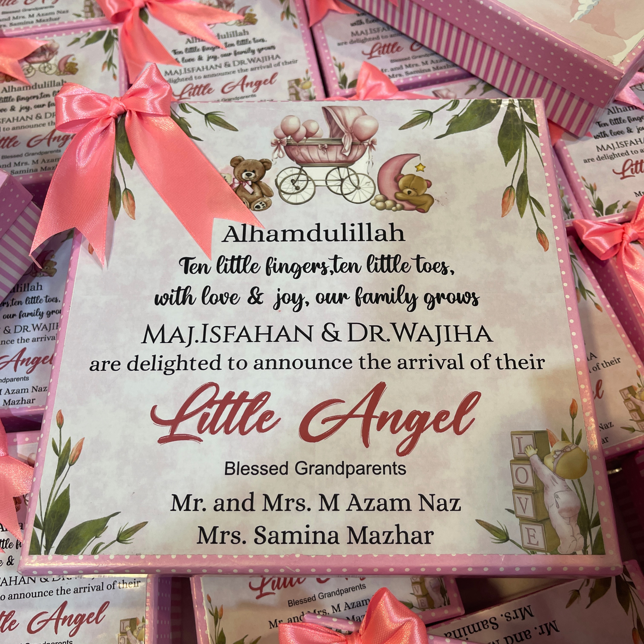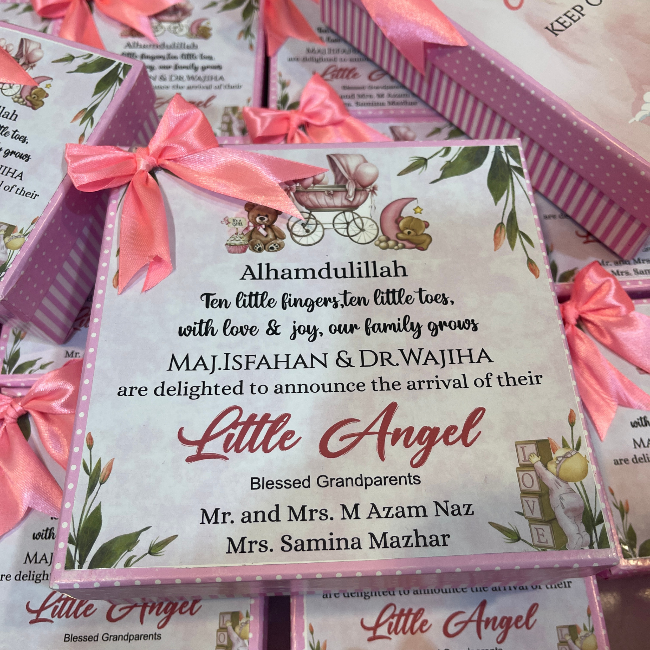 Our Baby Announcement Box is thoughtfully designed to celebrate your newborn’s arrival with love, joy, and elegance. These baby girl sweet boxes and baby sweet boxes are perfect for families who value personalization, tradition, and sharing happiness.