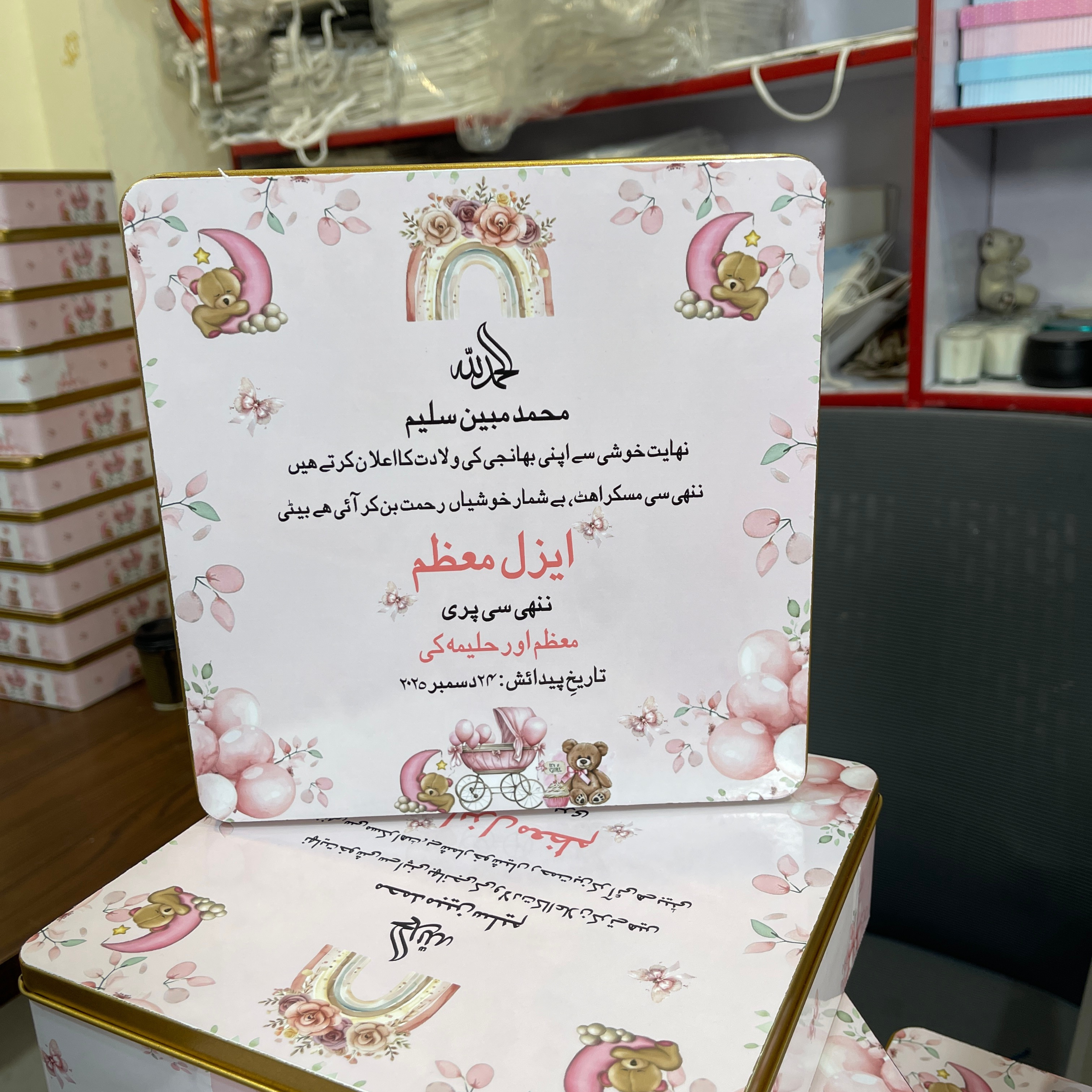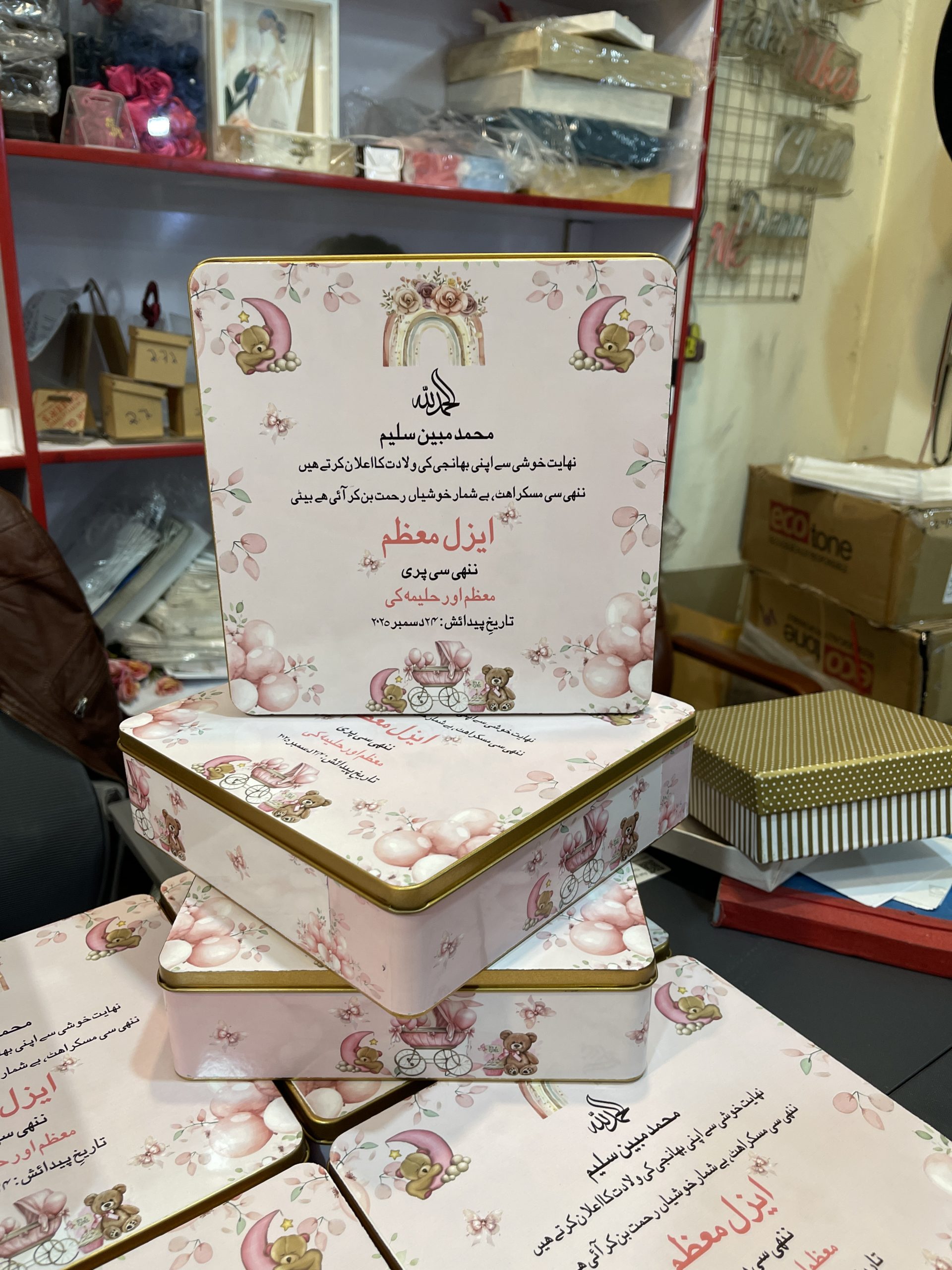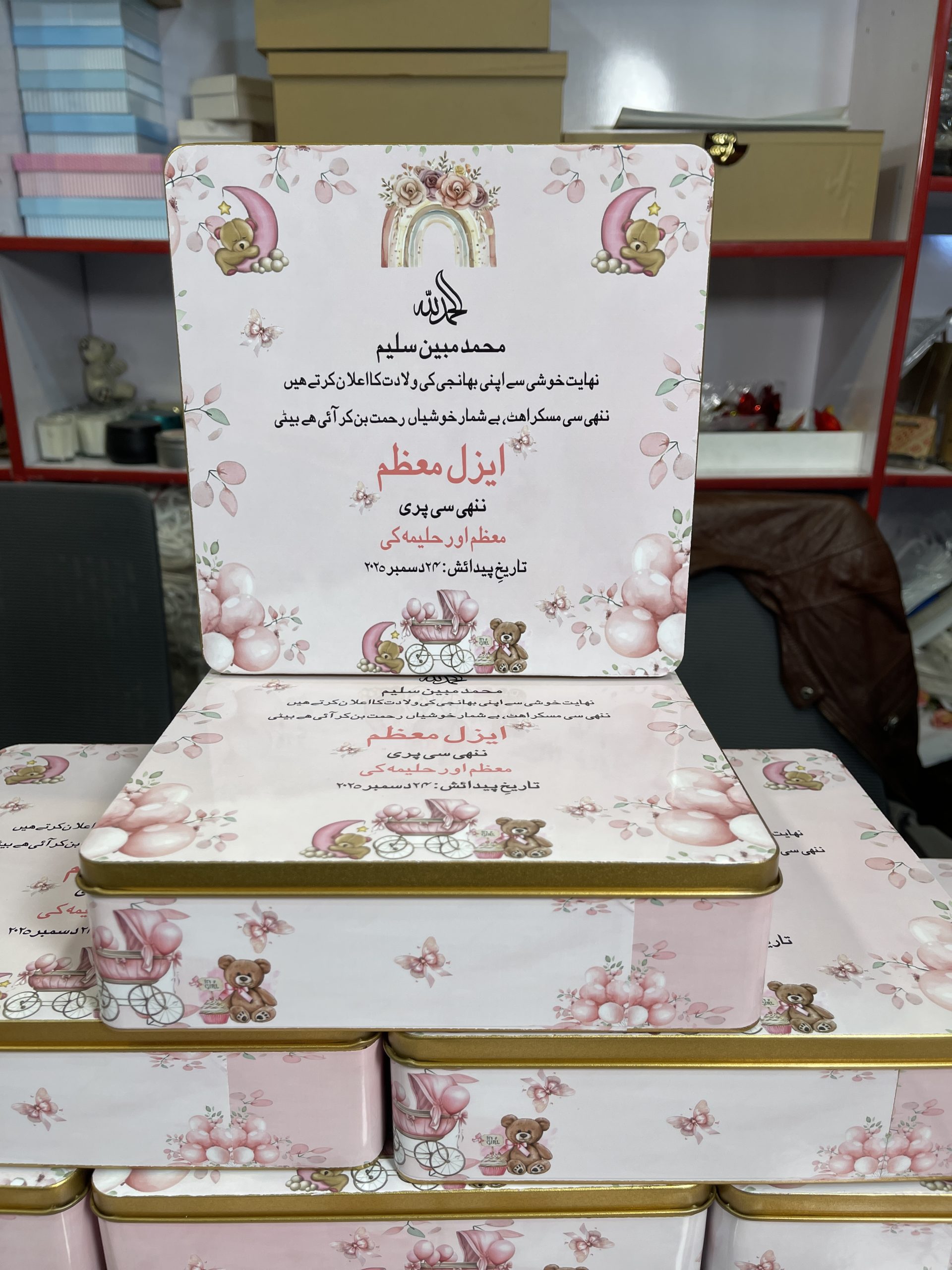 Our Baby Birth Announcement Boxes are designed to celebrate every newborn with elegance and emotion. Available as baby boy sweet boxes, baby girl sweet boxes, and ideal for newborn giveaways ideas or newborn favors in Pakistan, these baby sweet boxes are the perfect keepsake to share your joy. At HF Gifts, we combine premium craftsmanship, personalization, and heartfelt presentation — because every newborn deserves a memorable welcome.