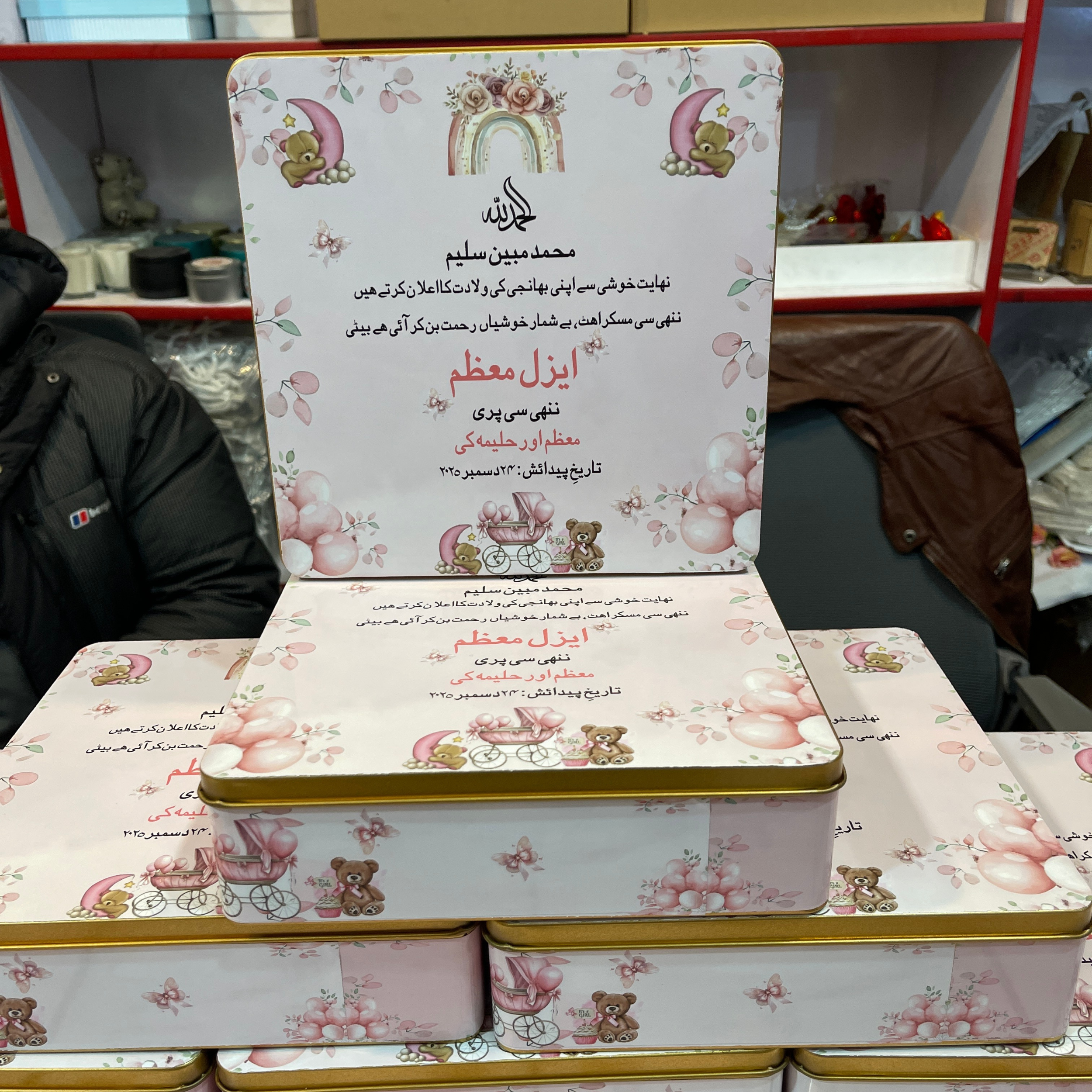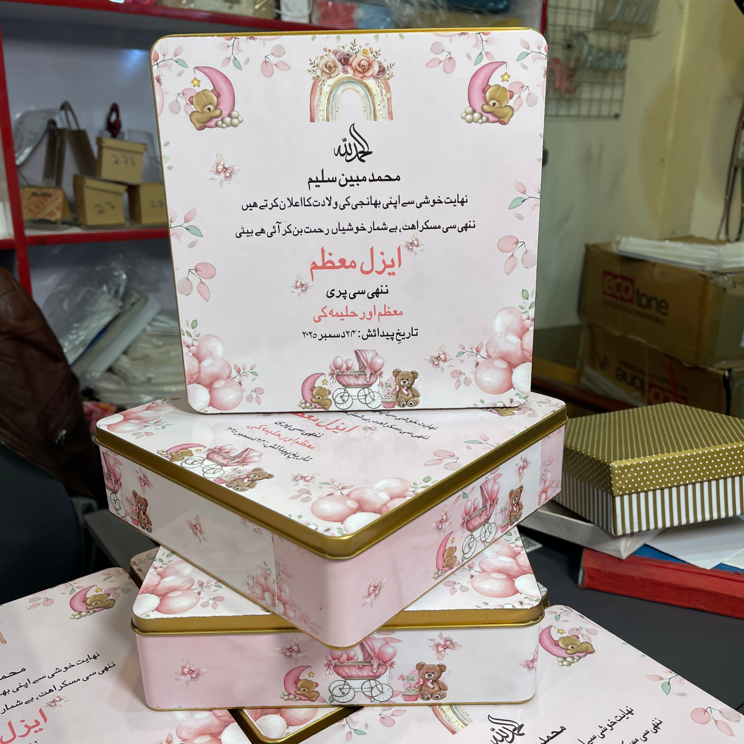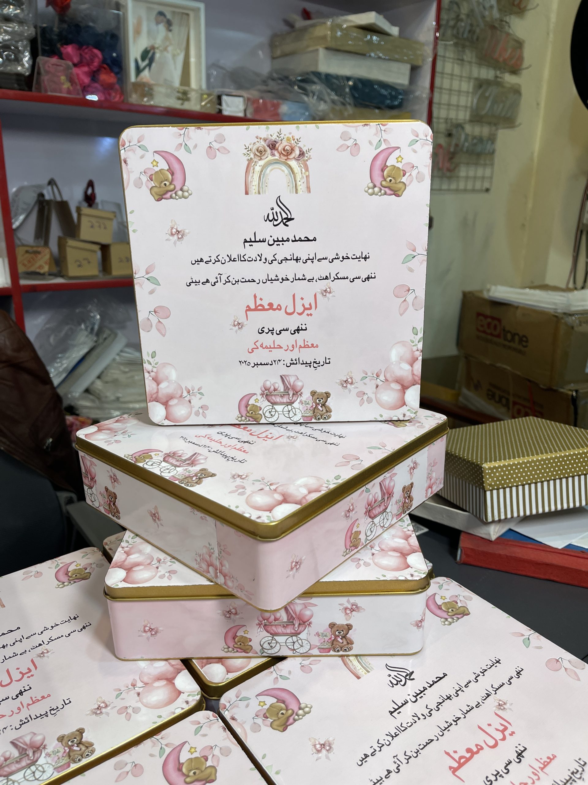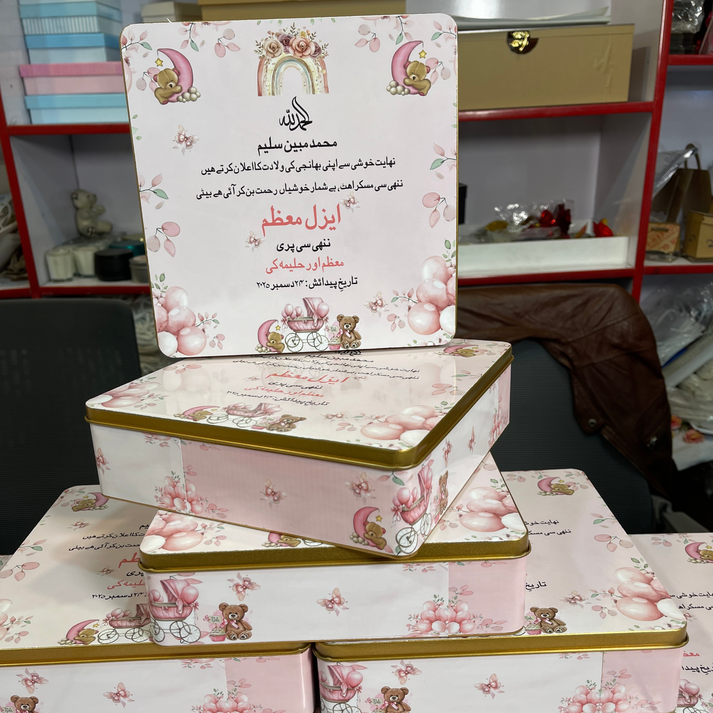 Our Baby Birth Announcement Boxes are designed to celebrate every newborn with elegance and emotion. Available as baby boy sweet boxes, baby girl sweet boxes, and ideal for newborn giveaways ideas or newborn favors in Pakistan, these baby sweet boxes are the perfect keepsake to share your joy. At HF Gifts, we combine premium craftsmanship, personalization, and heartfelt presentation — because every newborn deserves a memorable welcome.