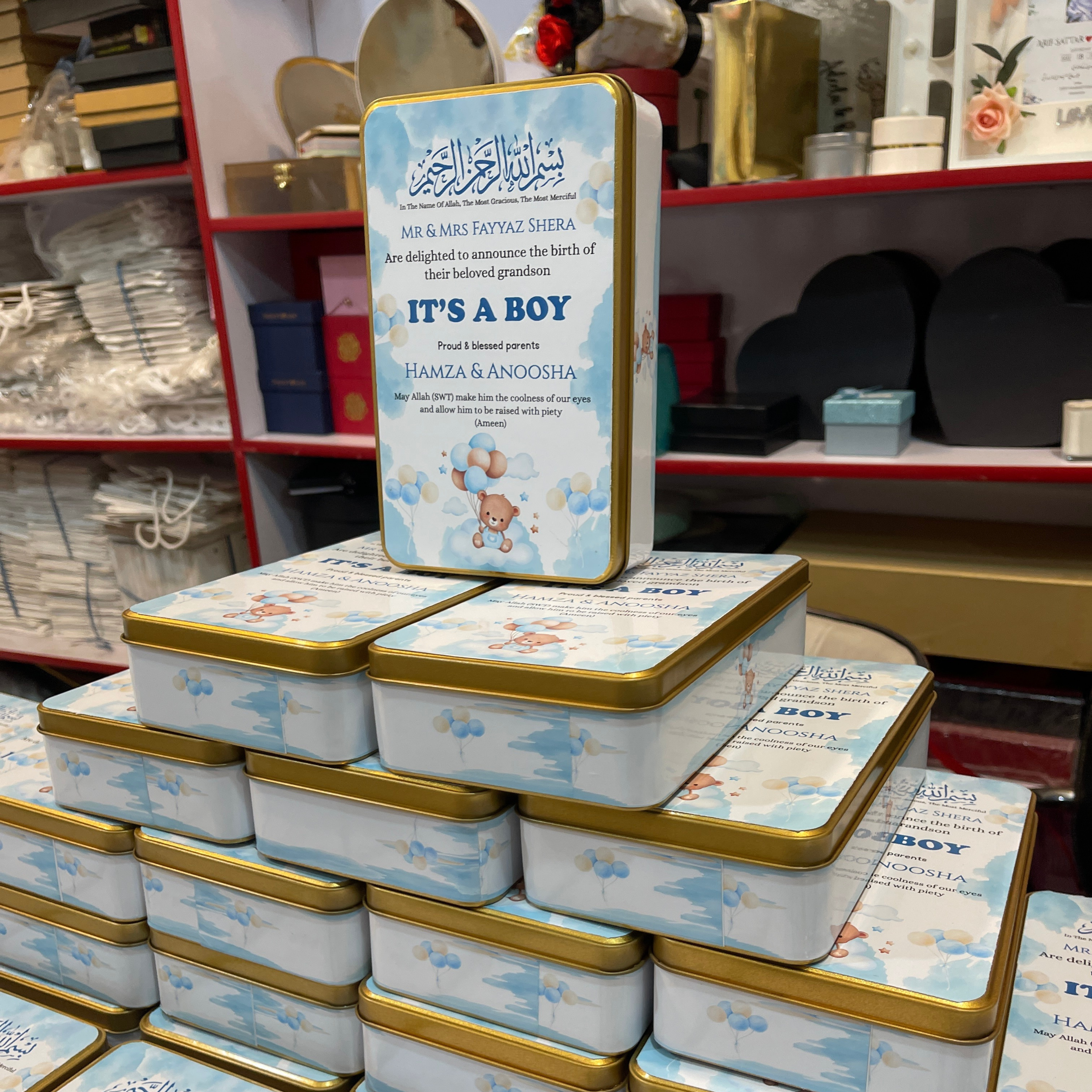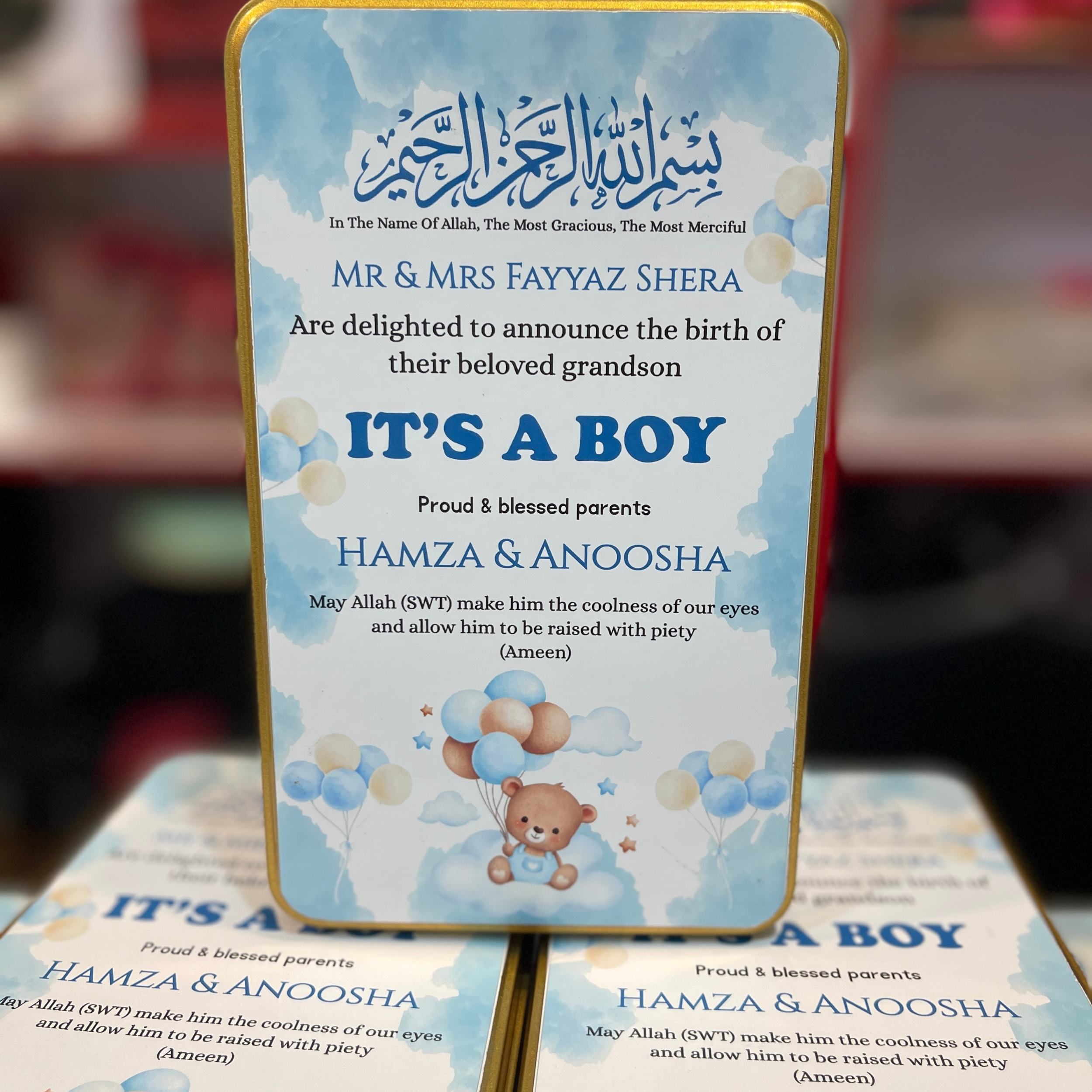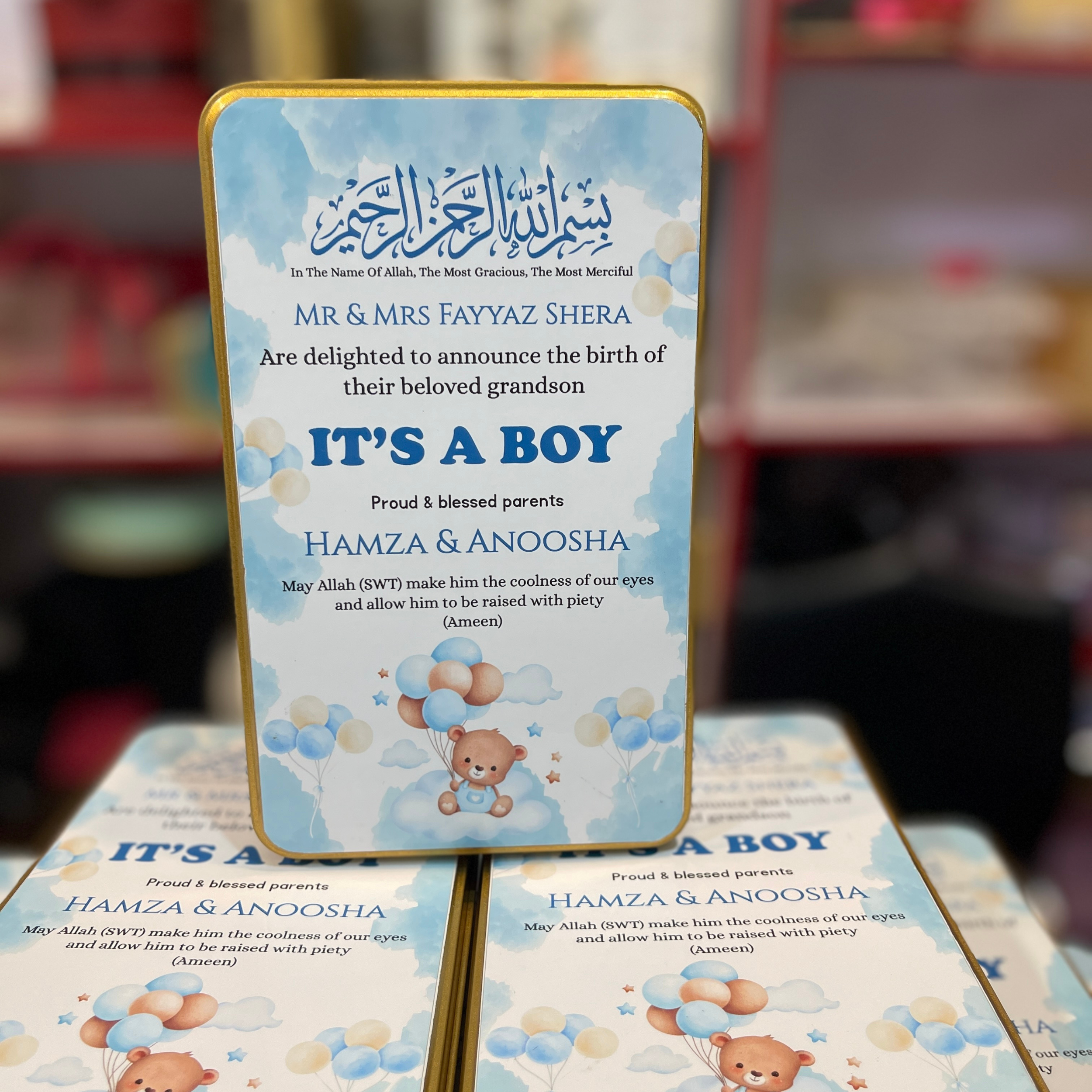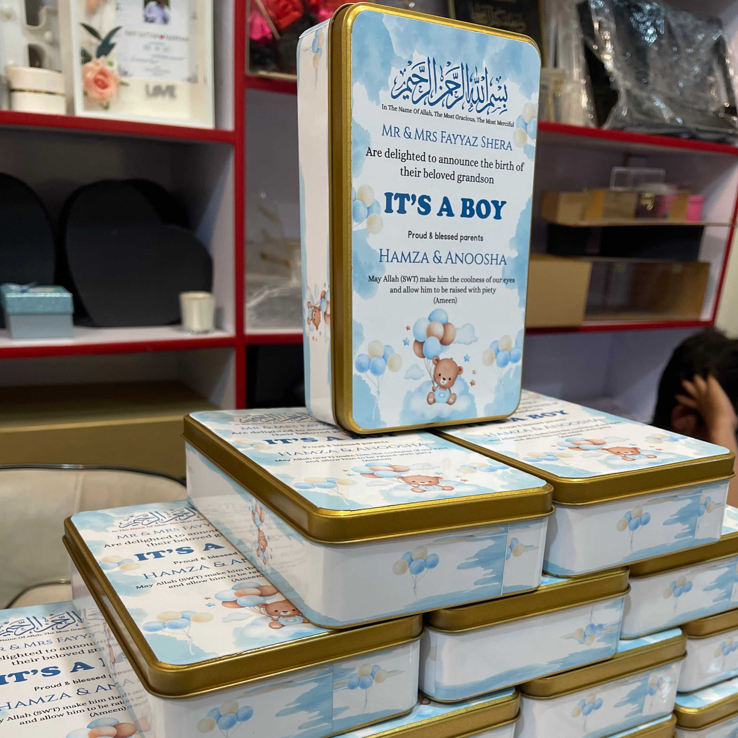 Celebrate your little one’s arrival with elegance and love! Our Baby Announcement Sweet Boxes in Pakistan are carefully crafted to make your newborn’s first announcement unforgettable. Perfect for baby boy sweet boxes, baby arrival sweet boxes, or newborn gift ideas, each box can be personalized with names and heartfelt messages to create lasting memories.