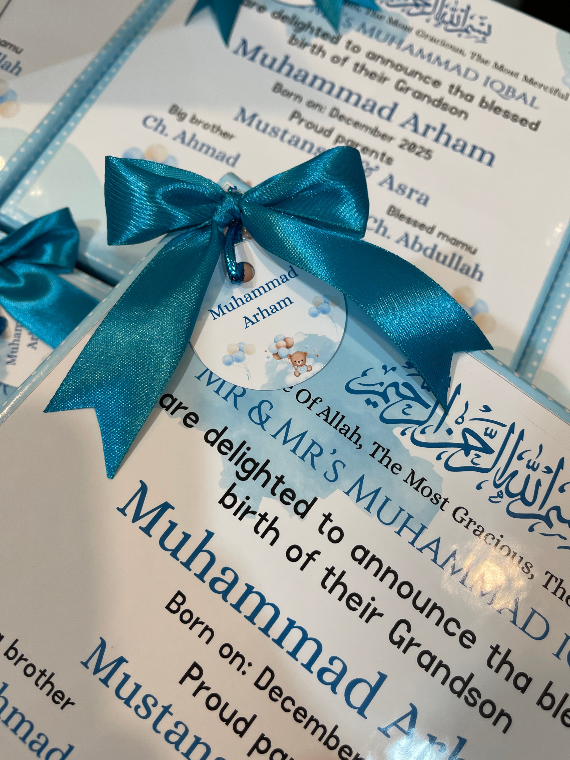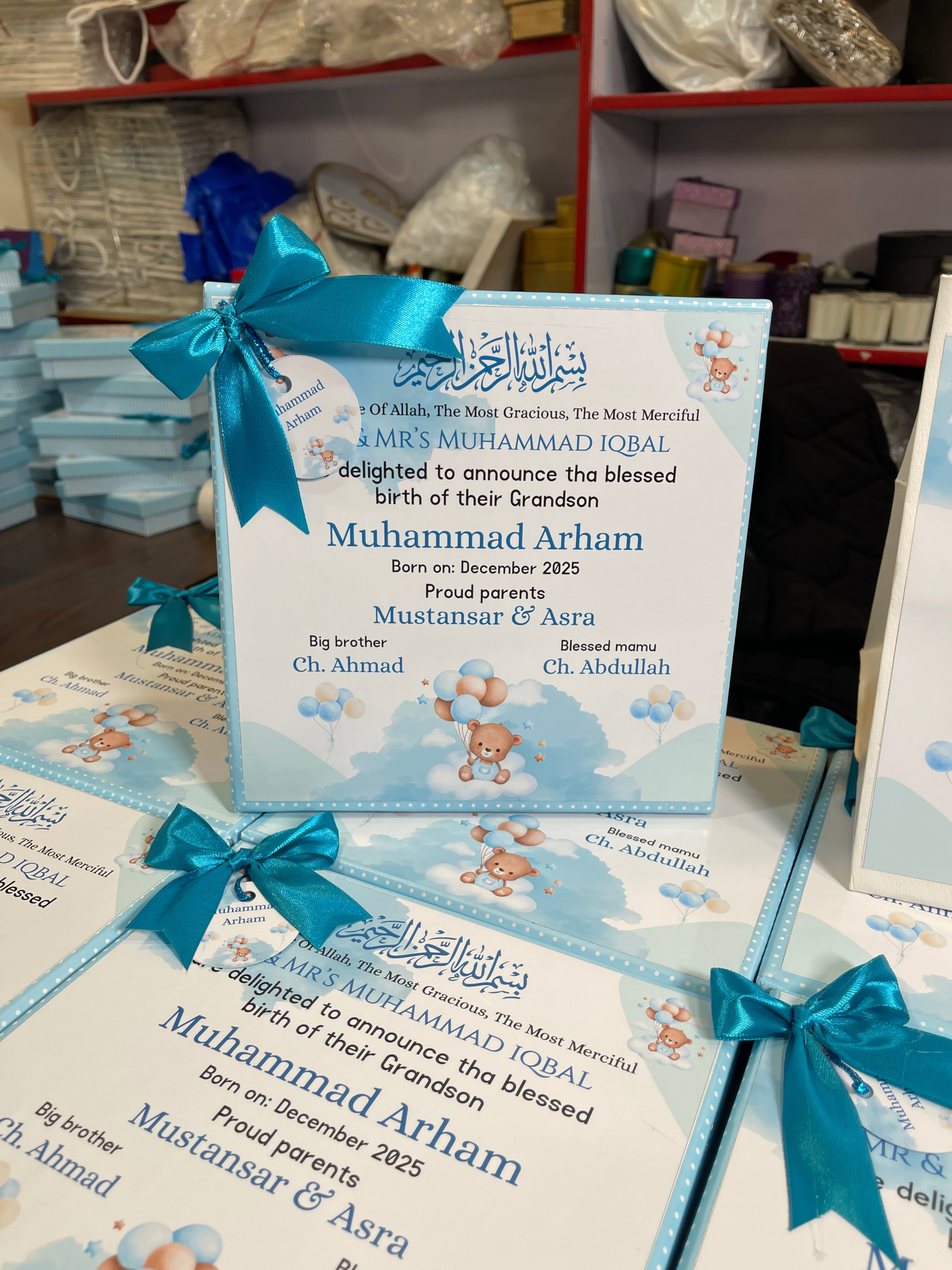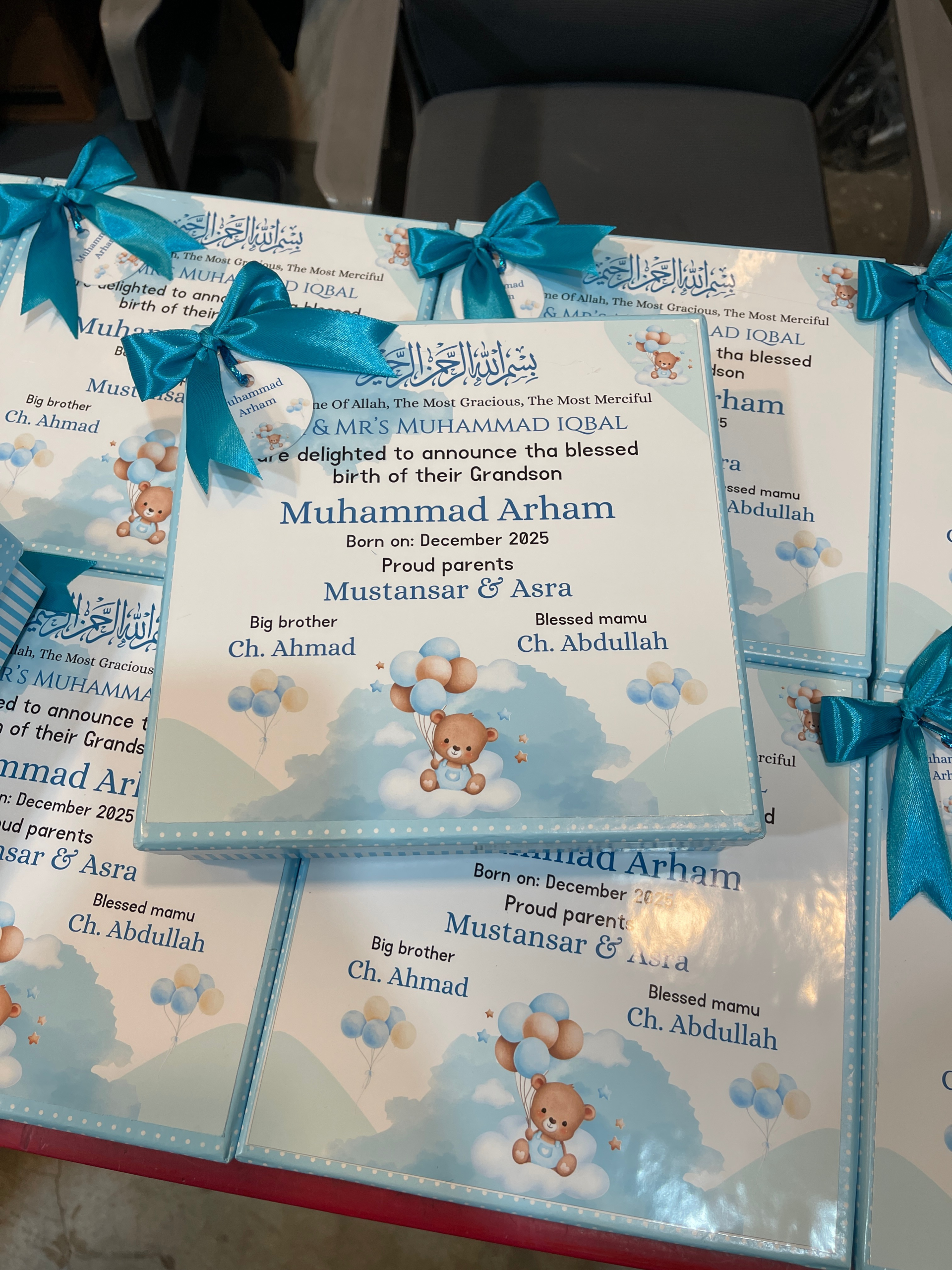 We offer a wide range of Baby Birth Announcement Box designs, including baby sweet tin boxes and special baby girl sweet boxes, allowing you to choose the perfect style for your newborn’s first announcement. Our boxes are ideal for newborn giveaways ideas and newborn favors ideas, making every family gathering, baby shower, or celebration more memorable.