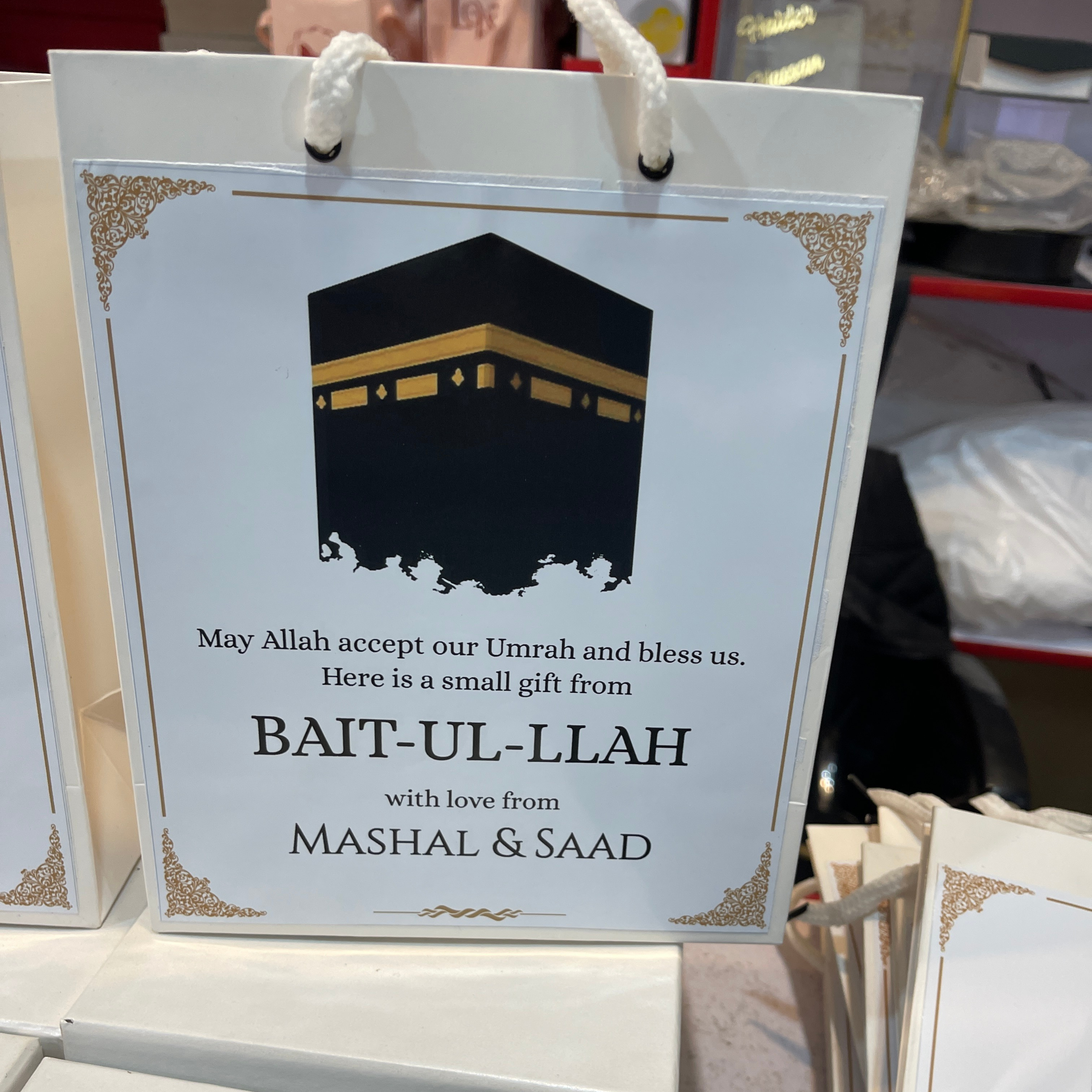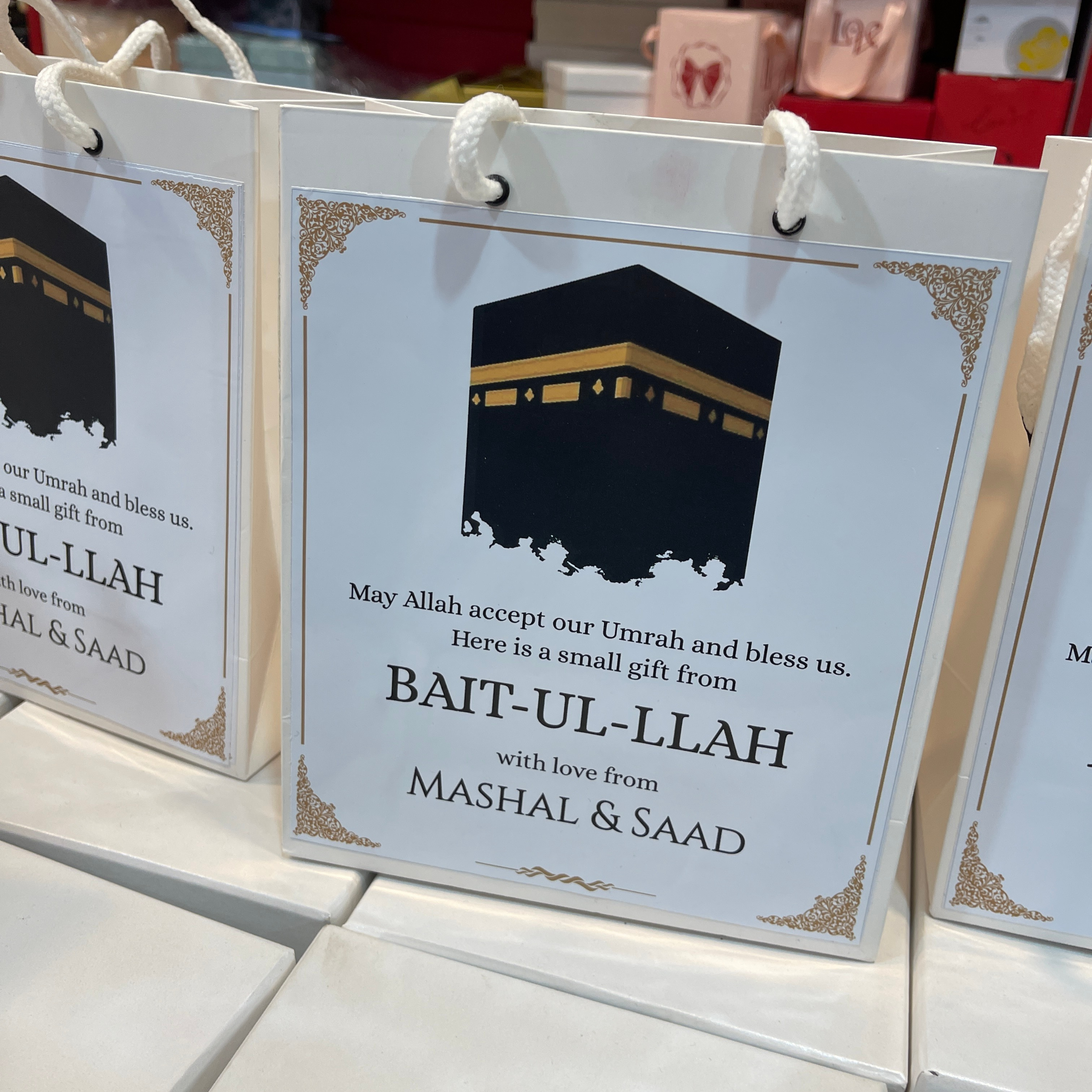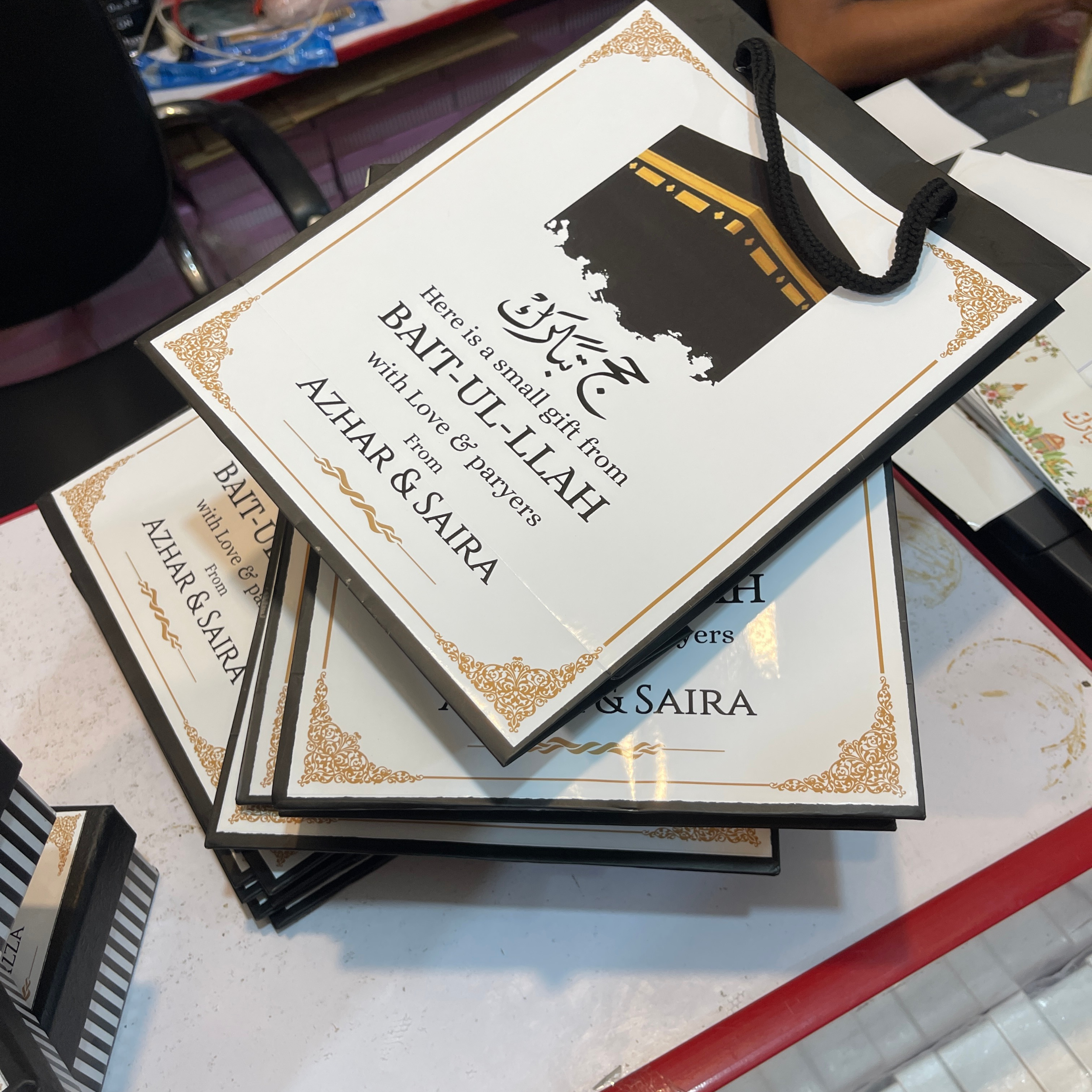 Celebrate sacred moments with our Umrah and Hajj Tabarak Bags Package, perfect for Umrah and Hajj return gifts packing in Pakistan. These premium bags allow you to share blessings, Umrah and Hajj favors, Aameen gifts, and thoughtful Hadiya with family and friends.