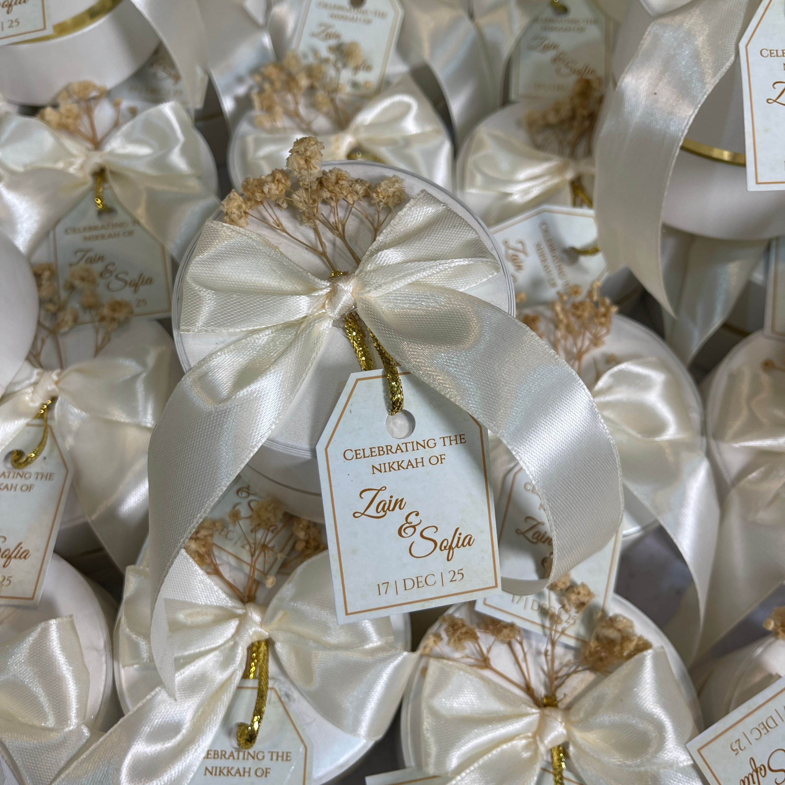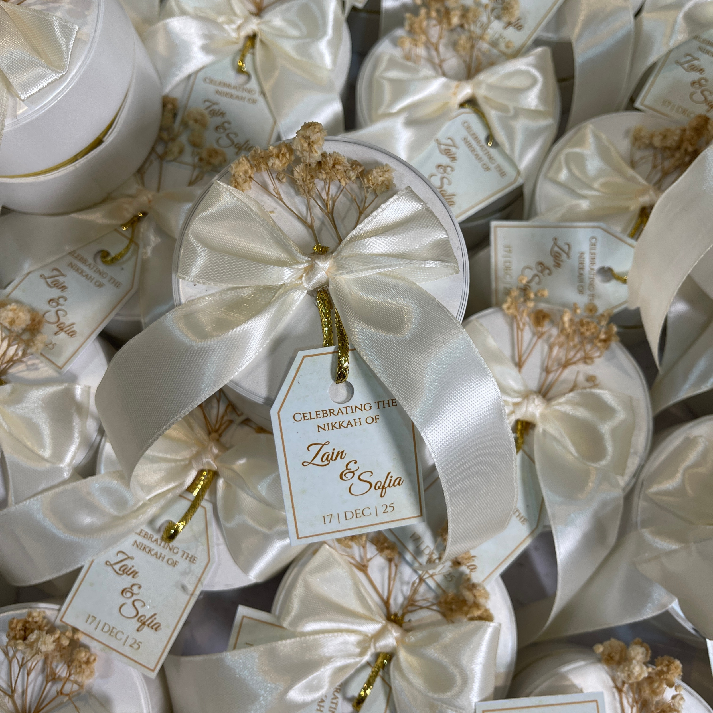 Add a delicate and charming touch to your wedding with our Wedding Favor Box with Baby Breath, beautifully crafted in pearl white color with 3×3 inch dimensions. Adorned with elegant baby breath floral detailing, this favor box is perfect for holding sweets, chocolates, or small gifts, making it a thoughtful keepsake for your guests. Its soft, graceful design blends effortlessly with wedding décor, creating a memorable and sophisticated presentation for your special day.